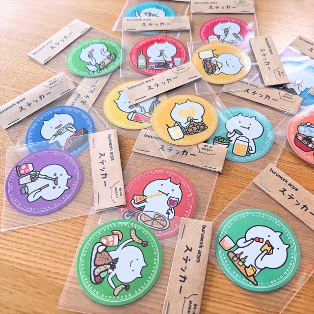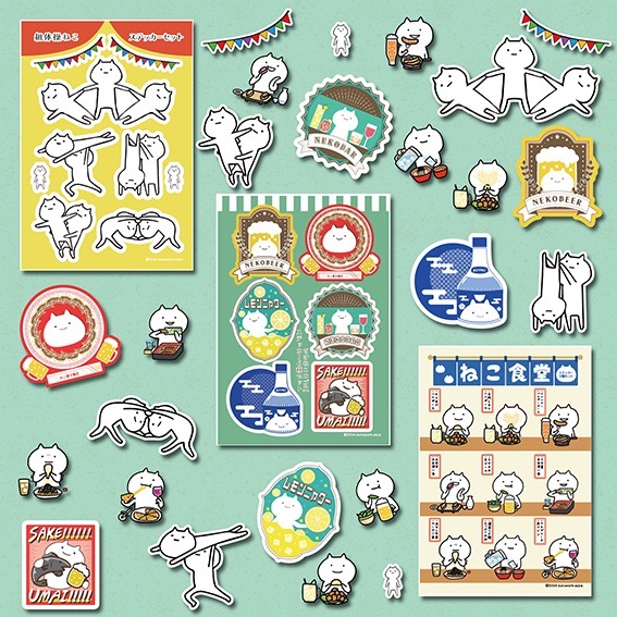 - ねこ・おさけ・ごはんのイラストを中心に、日常に少しの笑いを届けられるような雑貨をご用意しております。ステッカーやコースター、レトログラスやトートバッグなど様々なグッズあります!