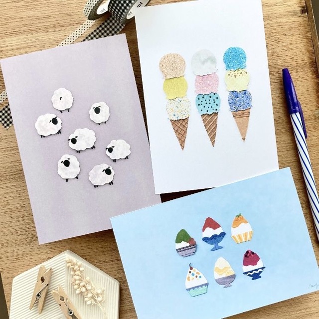 - 紙を使ってレターセットやポストカードなどの雑貨やアクセサリーを制作しています。紙という素材がもつあたたかさを作品から感じてもらえるよう日々制作に励んでいます。