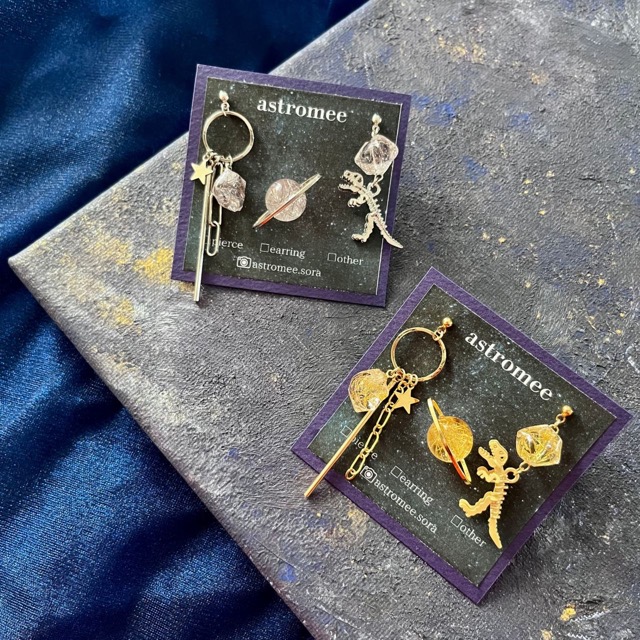- 「世界にひとつだけの宇宙を、あなたの耳元に。」 宇宙や惑星、星のきらめきから着想を得て、ひとつひとつ異なる表情をもつアクセサリーを制作しています。 同じものは二つとない、小さな宇宙。 身につけるたび、日常の中でそっと心が遠くへ旅するような、ときめきをお届けします。