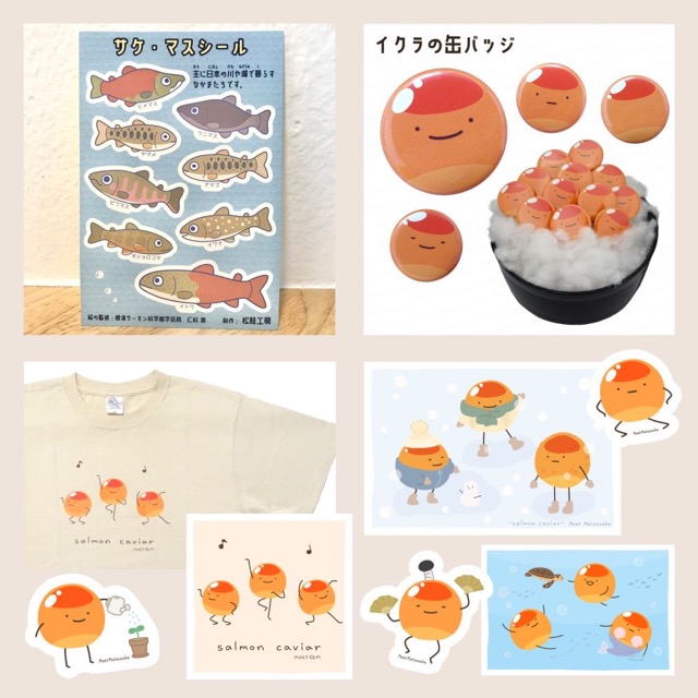 - 鮭、イクラ、ユーモア雑貨、ゆるかわいいイラスト雑貨と漫画。・『貼るサーモン 鱒キングテープ』最新作<粒つやイクラ柄>が名古屋初登場!・『モイどんとマロどん』オリジナルキャラクターほのぼのギャグ漫画。・『鮭フレーク』鮭・鱒イラストのフレークシール。・『踊る3粒のイクラ』イラスト雑貨・Tシャツ・缶バッジ等。・当日展示のない作品も在庫は一部持参予定なのでお気軽にお声かけください!皆様をお待ちしています!