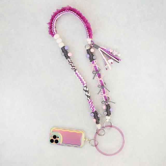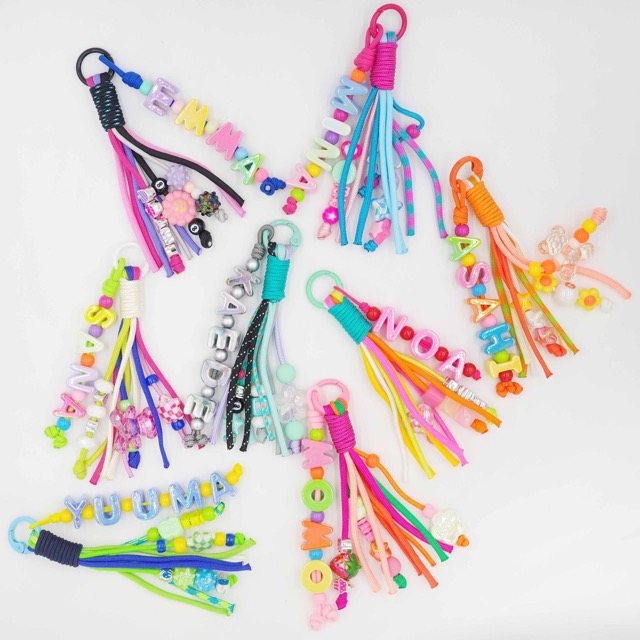 - 2025年よりパラコードにビーズやリボンを編み込んだストラップを販売開始。 独特な色づかいやユニークなデザインのストラップは、自分自身の気分を上げるだけでなく周りの人も思わず振り返る“kawaii”が詰まった自信作です。また肩掛け・手首・バッグの持ち手と使い分けられるマルチウェイ仕様で機能性も抜群。製作時に発生する端材を使用したサステナビリティに富んだタッセルチャームも人気です。