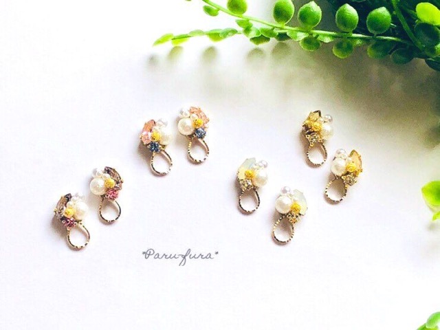 - 《オトナ可愛い》をコンセプトに糸やビジューを使用したピアスとイヤリングです。果物や花をイメージにしたもの、小さいけど存在感があるものなど色々な種類をご用意しております。