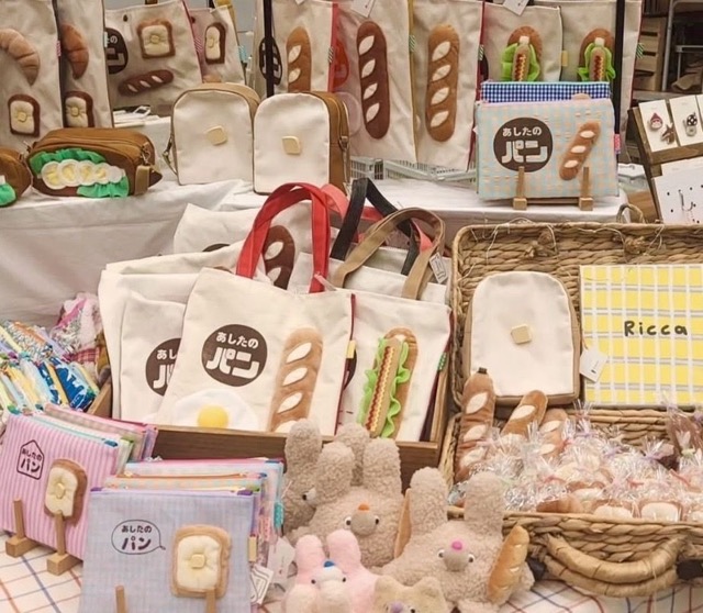 - 【Happyotete♪】オリジナルキャラクターのぬいぐるみやキーホルダー・手描きグッズを制作。イチオシキャラは「ムッシュハナゲ」です。【Ricca】布小物雑貨を制作。かわいいキャラクター「キュん」や関西ならではの「あしたのパン」シリーズ。ぜひ見に来てください!