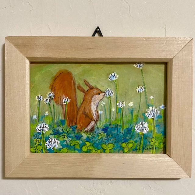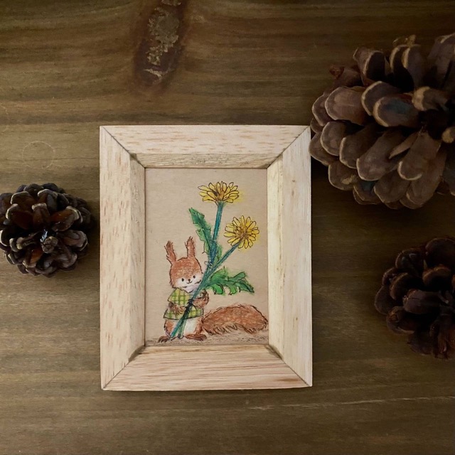- 動物を中心に描いています。動物たちの歌は森や野原いろんなところで咲いています。広い世界の中の小さくて愛おしい命たち。小さな額縁の中へ想いを込めて描きました。