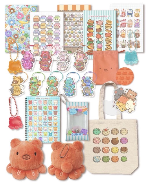 - オリジナルキャラクターのくまたこグッズや、食べ物をモチーフにした雑貨を販売