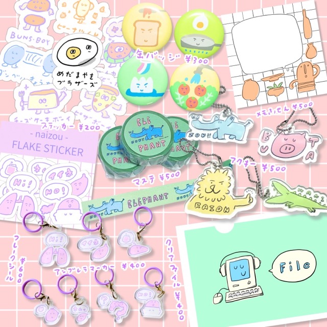 イラストグッズ(ステッカー、キーホルダー、マスキン