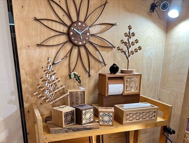 - 組子細工の技法を用いて釘など金物を使わずに組み立てたインテリア小物、掛け置き時計や照明などさらに大型の家具、建具に至るまでさまざまなアイテムを製作している工房です 和と洋がひとつに溶け込んだ優しくて繊細な作品たちをぜひご覧ください