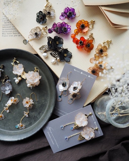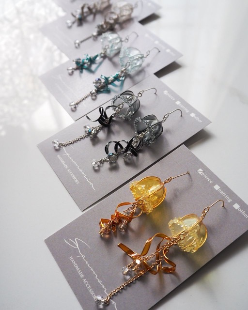 - 透ける色彩と煌めきを大切に、花やクラゲ、人魚の鱗などをモチーフにしたアシンメトリーアクセサリーを制作しています。 ワイヤーと樹脂液で生み出す、ディップアートならではの軽やかさと透明感。 ひとつひとつ表情の異なる作品をお楽しみください。 テレビドラマに衣装協力したクラゲの耳飾りや、先行販売商品、イベント限定割引もご用意しています。 ぜひお気に入りを見つけにいらしてください。