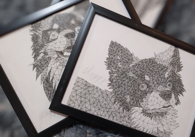 - ボールペン画アーティストShaggy〜triangle art〜です。 全ての作品をボールペンによる三角形で描き、中に引く線の密度で色の濃淡を変えて表現しています。近くで見ると三角形なのに、遠くで見ると絵に見えてくる。そんなトライアングルアートの原画を展示販売しています。 また、お客様のペットのお写真からのオーダーも受け付けております。