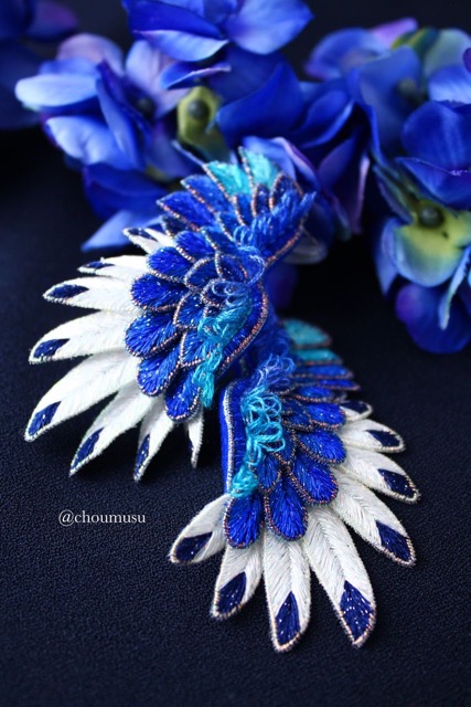 - 立体的に刺繍を施す《Stumpwork-スタンプワーク-》の技法を生かしてオリジナルの作品を制作しています。 質感様々な色とりどりの刺繍糸でつくる鳥の羽根や花のアクセサリーやオブジェは、水彩で描くようなじんわりとした優しい色合いであなたに寄り添います。 《糸は宝石》という言葉、そこから浮かんでくる情景や身につける喜びを感じて頂けるようなものづくりを心がけています。