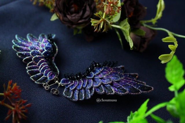 立体刺繍の羽根アクセサリー