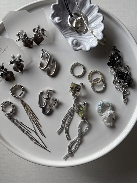 - 今の気分を映すヴィンテージと現代と自作ピースのミックスを楽しむアクセサリー。自由で繊細な手仕事と即興的デザインを掛け合わせて、抜け感のあるプレイフルなアイテムを制作しています。