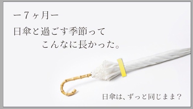 - 犬山城下町にお店がありますイヌヤマガレッジです。自社のオリジナルブランドをいろいろ作って並べています。今回はベルト部分が着せ替え出来る晴雨兼用の日傘を販売します。