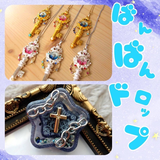- レジンアクセサリー作家をしているがぶりととちです。今回、ばんばんドロップの二人でクリマ初出店となります!がぶりは宇宙やメルヘンモチーフが多めのネックレスや耳飾りなどのアクセサリーをメインで持っていきます。とちは、モールドを使用したレジン作品(キーホルダー、バッグチャーム多め)で持っていきます。可愛い作品からかっこいい作品まで多数あります!是非、二人が創り出す違う世界観を楽しみに来てください!