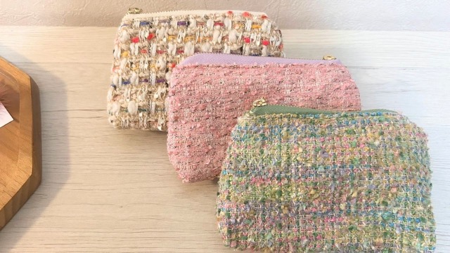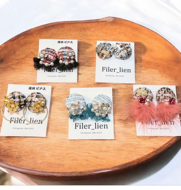 - 世界三大織物の尾州織物を使い、ピアスイヤリング、ブローチ、ヘアクリップ、ポーチ、バックなどを作っています。 尾州織物を身近に使用していただきたいです。
