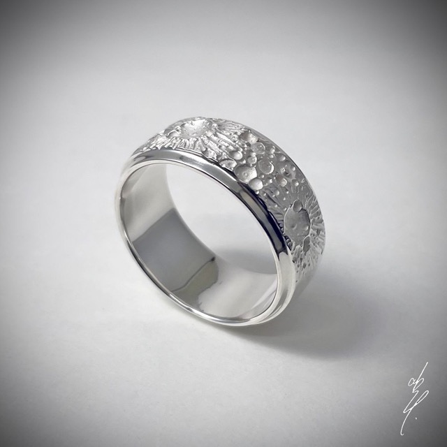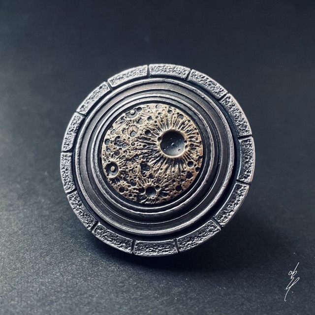 - 月のクレーターや植物・貝類・地層、また廃墟などといった 時間の経過や現象,行為による【事象の積み重なり】によって形成されるカタチを主なテーマ・モチーフに 鋳造技法を用いてジュエリー・アートピース作品を制作しています。 積み重ねられた年月、その末に見ることのできる景色に想いを馳せて。