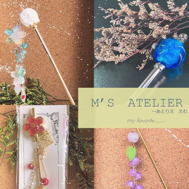 - M's atelier (あとりえ えむ)です!飴玉かんざし、和風、ファンタジー、スチームパンク、ゆめかわ系など20種類以上取り揃えています!まとめ方のご相談もOK!さすだけのタイプもご用意しています。ぜひ一度見に来てみてください!