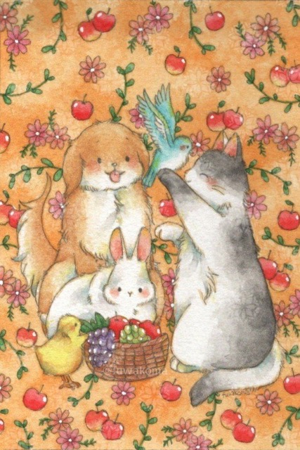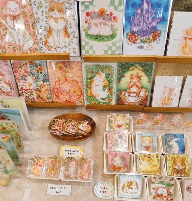 水彩で動物や花を描いています。 ポストカード、シール、キーホルダーなどを販売予定です。