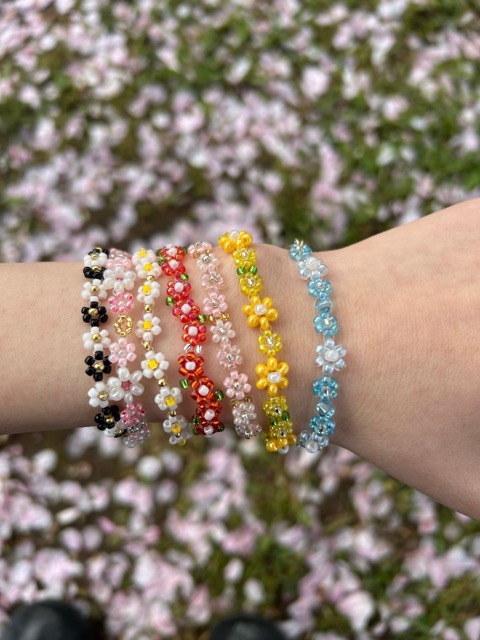 - アーティスト 永田ちひろ 薬学部卒。好きを仕事に、はどこまで実現できるか模索中。 出店作品 ビーズを様々なお花の形に編んだとても可愛らしいアクセサリーです。中にはものすごい小さなビーズで編まれたお花も。 ストラップとしてカバンや鍵などにつけることもできます。その際は取り外しの手間が省けていつでも可愛いアクセサリーを携帯できます。 ビーズの糸であるテグスは頑丈で安心して使えます。