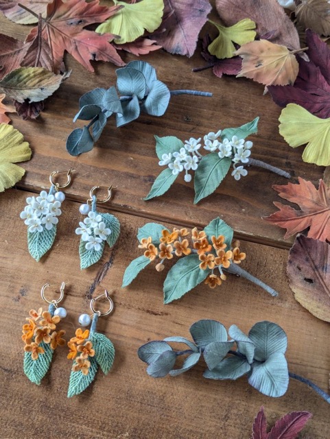 - 白い布を染め コテで形作った染め花のブローチやインテリア、パールや天然石、リボンなどを用いたアクセサリー 「笑みがこぼれる」をコンセプトに、毎日を彩りときめくフラワーアクセサリーやアイテムをお届けします