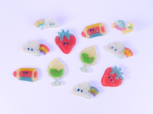 - 樹脂粘土やプラバンを使ってカラフルポップなへんてこキャラクターを作ってるよ。 ブローチやヘアクリップ、キーホルダーなど身に付けられる形に仕上げてる。 最近はパンチニードルに熱中してる。 お気に入りたちはステッカーにして、いずれはステッカーやさん顔をしたいなどと妄想している。
