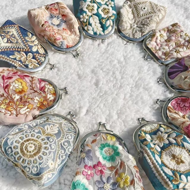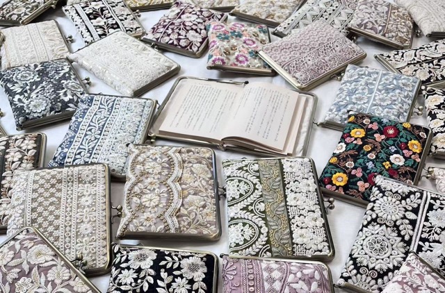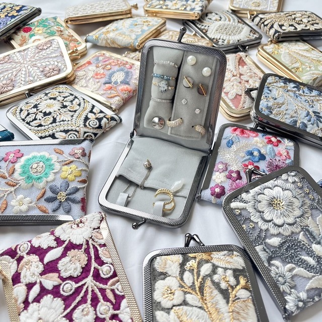 インド刺繍のがま口ブックカバーやポーチなど