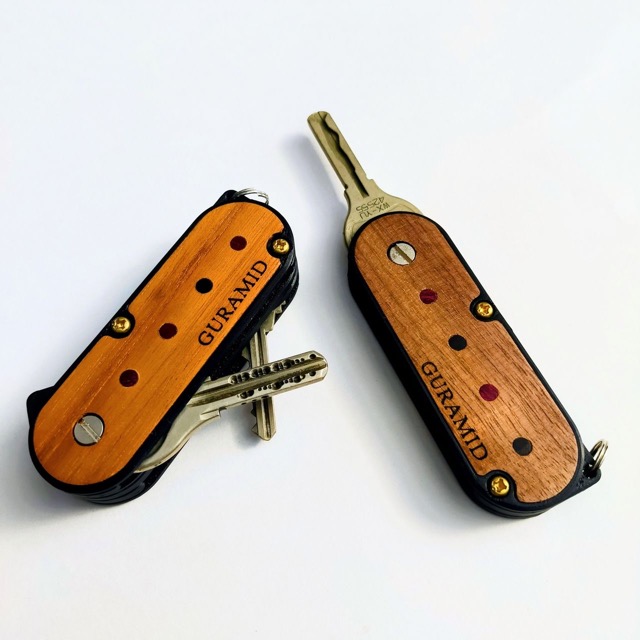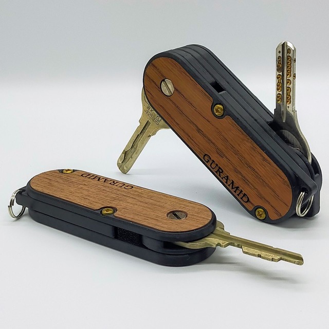 - キーケース専門グーラミッドです。 カチカチと小気味よい感触で鍵を出し入れできます。外装に様々な銘木を装着しており、色や木目などの違いがそれぞれの個性となります。鍵は簡単に取付でき、当日は取付サービスも行います。尚、形状によって取付不可な鍵もありますので、ご相談下さい。