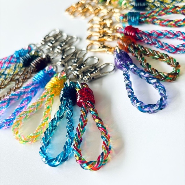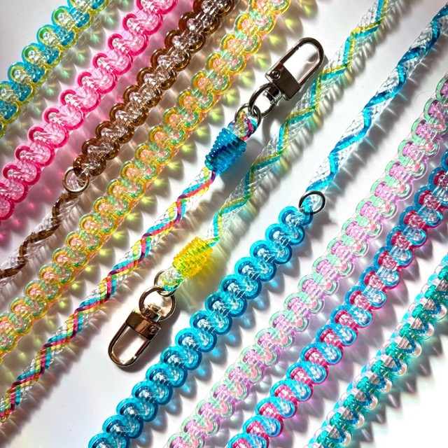- 透明×編む。完全オリジナルの伸びないPVCコード、【JellyCord】(ジェリーコード)を使用し、スケスケ・キラキラ・ツヤツヤな唯一無二の作品を一つ一つ手づくりで作っています。JellyCordを使用した作品は、まるでステンドグラスや万華鏡のように光に透け、重なり合う部分は色の変化も楽しめ、見ているだけで気分の上がるような作品になっています。ぜひ透かしに来てみて下さい。