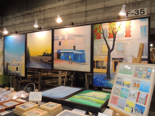 - ヨーロッパの町をスケッチして旅をし、その取材を元に油絵を描いています。 会場では幅1m以上の大きな原画を4点展示し、部屋にも飾りやすいサイズの油絵と製版したポストカード40種の販売をします。 麻のキャンバスに描いた油絵の風合いを近くで見て楽しんでもらえたらと思います。 新作も増えましたので夏に向けての明るいブースする予定です。宜しくお願いします。