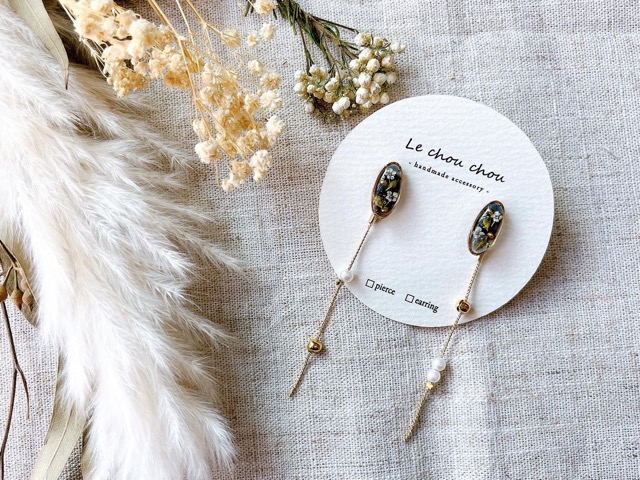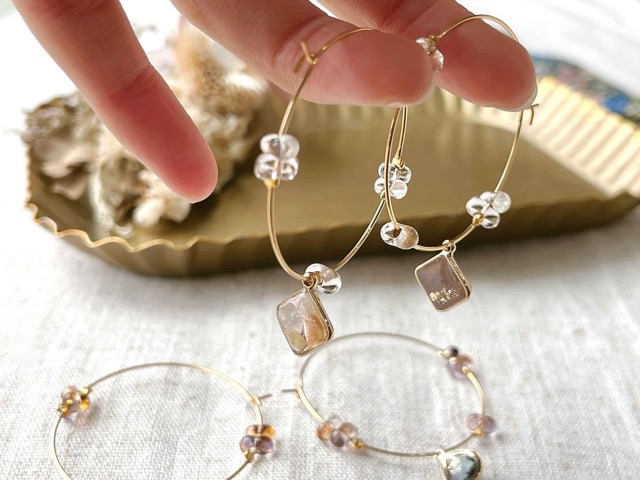 - かすみ草を球体に閉じ込めた 透明感のあるレジンアクセサリーを 製作しています! ぜひお手に取ってご覧ください!