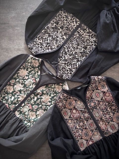 - 小柄さんのための大人服、つけ襟などの服飾小物を制作しております。 リバティやモリス、刺繍生地などを部分使いし、 表情のあるお洋服を仕立てています。 丈直しに悩まない、 気負わず着られる日常着を。